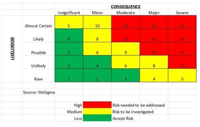Shown in the picture is an example of a simple risk assessment matrix. Several of these exist on the internet.